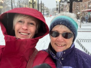For New Years Eve day, Maia was flying out to see an old friend in Ohio. Given that I’d be that far north, I offered to take my folks with me and continue on to Boulder, so they could see yet one more new place. In spite of their concern of how cold it was (4 degrees) and a pending winter storm, we hopped in the car and headed out. After dropping Maia off at the airport, we headed to Lafayette to have lunch with… ummm…. my guy (gulp, yes, haven’t blogged about him, I know…. but that will have to be shared later!) The weather was getting slightly worse, but was still no match for this Chicago-grown girl and her trusty Volvo :-). Mom and I dropped Dad off at the house to watch the college football game (he was in heaven) and she and I headed into Boulder to trapse around Pearl Street Mall. It was GREAT!
